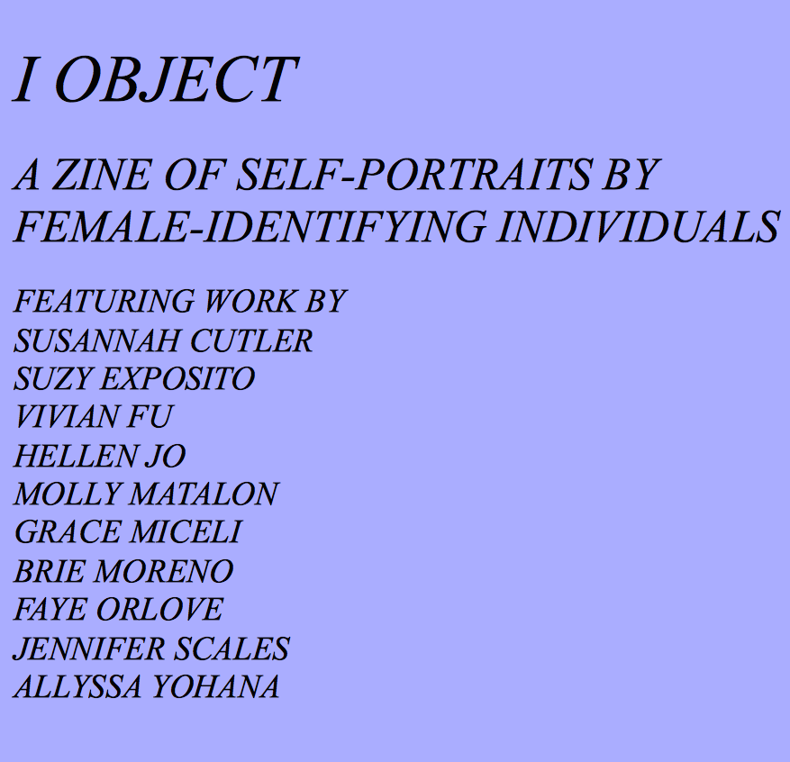 I OBJECT is a zine of self-portraits by female-identifying individuals.